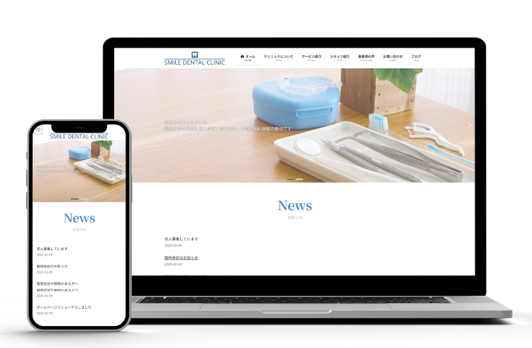 架空の歯科クリニックのHPをデザインしました。新規開業するクリーンで信頼感のある歯科クリニックの落ち着いた雰囲気を演出しています。 ターゲットは30〜40代の自身の歯の健康管理や予防に加え、子供が歯磨きを嫌いなことに悩まされている層を想定し、親しみやすく信頼感のあるビジュアルを意識しました。また、スマートフォンやタブレットでも快適に閲覧できるよう、レスポンシブデザインを取り入れています。